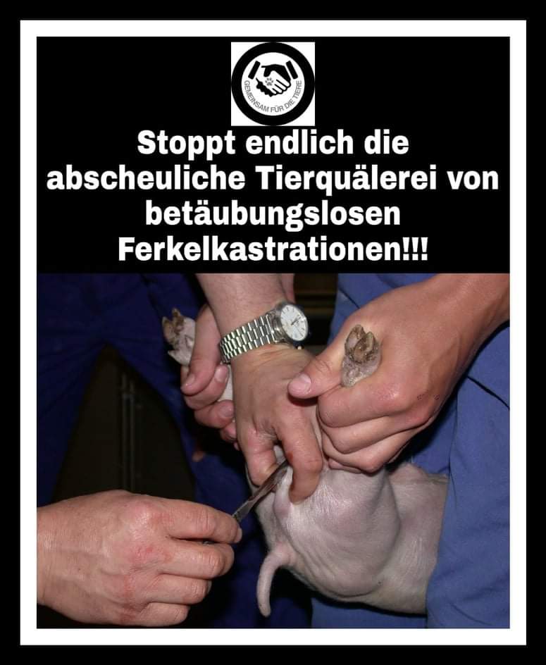 Diese abscheuliche Vorgangsweise in der Schweinehaltung von betäubungslosen Ferkelkastrationen gehört ausnahmslos verboten und in die Vergangenheit verbannt!