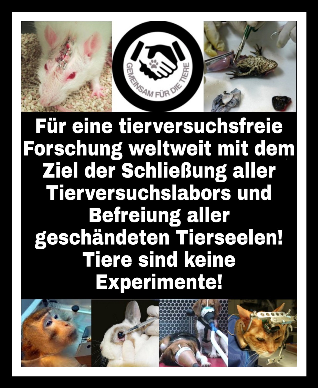 Wir appellieren an die Bundesregierungen in Deutschland und Österreich - Tierversuche, die stets auf Tierquälerei basieren und ein Relikt aus vergangener Zeit sind endgültig abzuschaffen und ausschliesslich auf tierversuchsfreie Forschungsmethoden zu setzen und diese auch umfangreich finanziell zu unterstützen! An den Konsumenten wenden wir uns mit der großen Bitte, nur tierversuchsfreie Produkte zu kaufen!